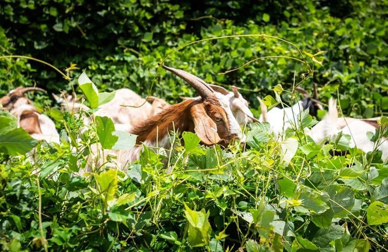 Goats and sheep are an effective, cost efficient, and sustainable method to get your landscape back under control. Our herd is comprised of goats that use their munching skills to clear brush, weeds, and invasive plant species.